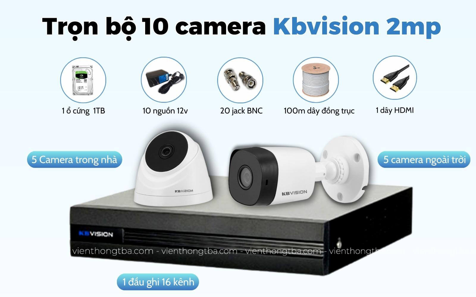 Bảng giá trọn bộ 10 camera Kbvision 2MP tại Viễn Thông TBA?