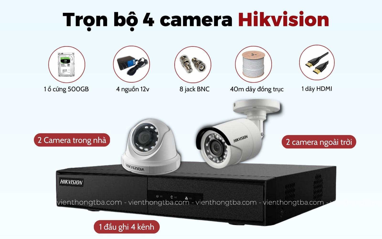 *Bảng giá trọn bộ 4 camera Hikvision 2 MP tại Viễn Thông TBA?
