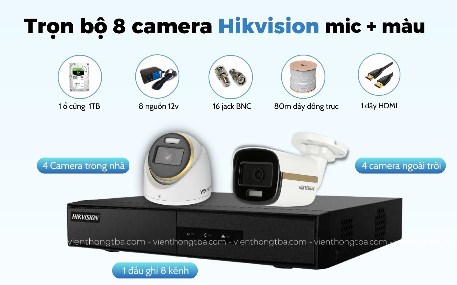 Bộ 8 Camera HIKVISION 2.0mp - Thu Tiếng - Có Màu Ban Đêm