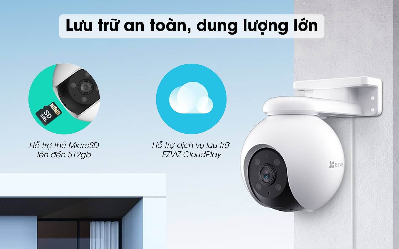 Với sản phẩm này, Ezviz cho phép người dùng có thể lưu trữ bằng 2 phương thức: thẻ nhớ Micro SD (tối đa 512GB) hoặc đăng ký Ezviz Cloud (có trả phí hàng tháng).