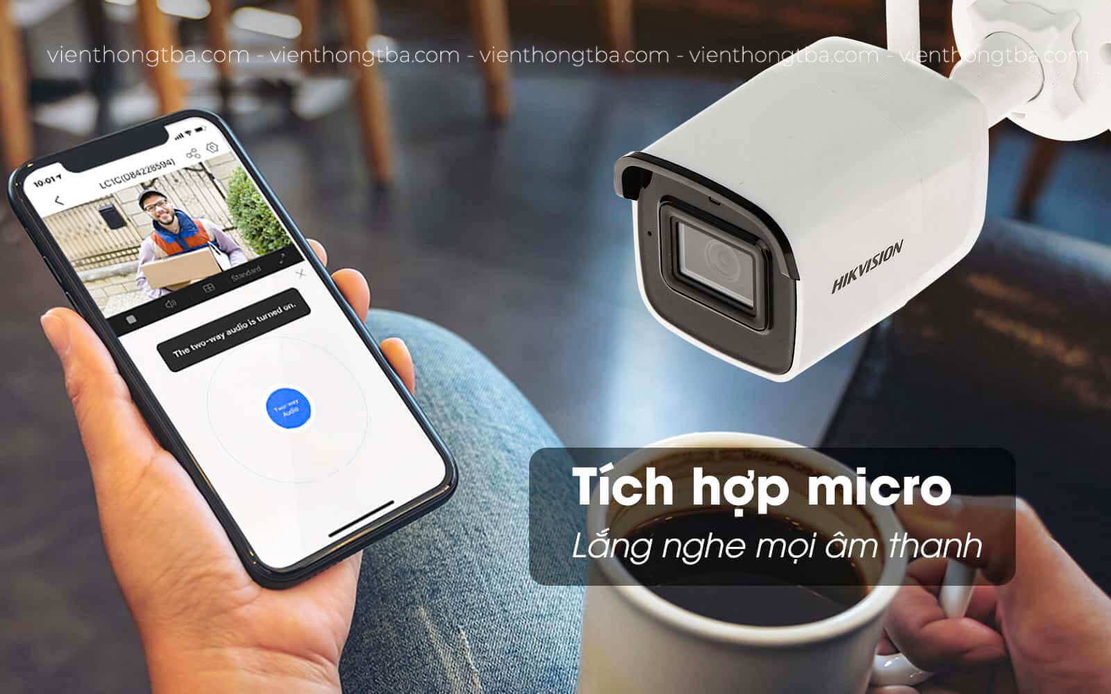 Camera DS-2CD2021G1-IDW1 được tích hợp 1 Micro mang âm thanh đơn âm camera cho đầu ra âm thanh rõ ràng giúp bạn kiểm soát được các sự việc đã và đang xảy ra.