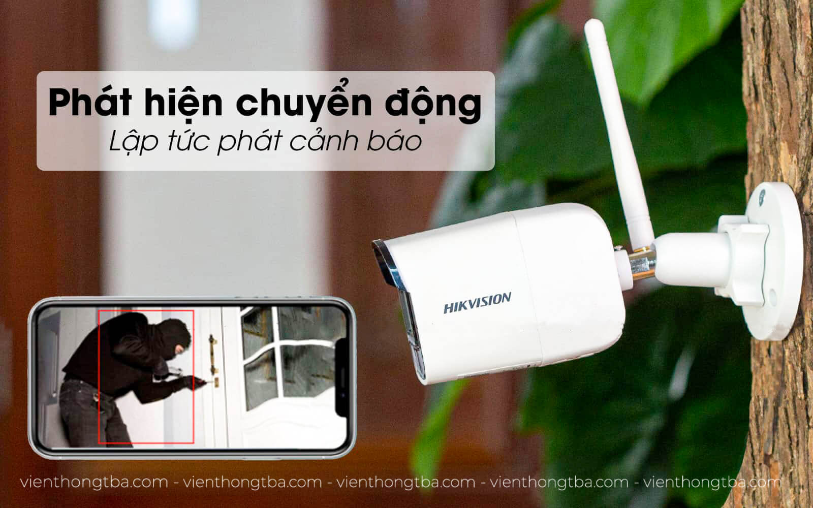 Trong phạm vi quan sát, camera không dây ngoài trời DS-2CD2021G1-IDW1 sẽ chủ động theo dõi phát hiện chuyển động và cảnh báo các giả mạo video. Ngay khi được ghi nhận ảnh báo sẽ lập tức gửi về điện thoại của bạn thông qua ứng dụng Hik-Connect.