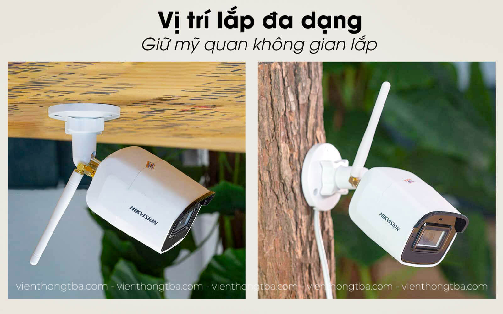 Chiếm ưu thế từ sự gọn nhẹ, đi kèm là chân đế chắc chắn rất thuận tiện cho việc chọn vị trí phù hợp mà vẫn giữ được mỹ quan của không gian lắp. Bạn có thể lựa chọn lắp camera quan sát ở các vị trí như: cổng sau, cổng ngõ, cột điện, cột đèn,...